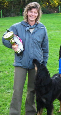 Nazaj k najini zmaga na tekmovanju. Občutek, ko po več letih prideš na isti kraj, na isto tekmovanje (Regijska tekma šolanih psov, KD Pluton, 19.09.2010) je povsem poseben. Poseben zato, ker pes ni robot in dva psa si nista enaka, ne glede na njune sorodstvene vezi. Pa vendar si isti vodnik, ista oseba. Ponoviti uspeh iz preteklih let je prej vzrok za tremo kot razlog za vzpodbudo... Z mojo Carambo pridno trenirava pri Celei; tam sva opravili tudi izpit Bbh in to je od nekdaj bil moj "matični klub"; jaz sem sicer član večih kinoloških klubov. In kadar grem na tekmovanje z veseljem zastopam barve ŠKD Celeie. Naš vaditelj je Marcel Vodovnik; on je "moj sodniški kolega" (Marcel je sodnik za delo športnih psov, jaz za zunanjost pasemskih psov), dober prijatelj, odličen marker, sam aktiven vodnik in lansko leto aktualni državni prvak po programu IPO 3, član Slovenske reprezentance in še sem kaj izpustila. Seveda je v Sloveniji ogromno vodnikov, ki s svojimi štirinožci uspešno opravijo izpit Bbh! Vendar, kadar naj bi pes ali psica osvojeno znanje prikazal na tekmovanju, zadeva ni več popolnoma ista! Dovolite, da pojasnim: na tekmovanjih je vendarle prisotna trema, kinološka publika, veliko psov, ki so najboljši izmed vseh. In pripraviti psa na udeležbo na tekmovanju je do neke mere tudi povsem posebno znanje, pa si mislite, kakor si želite. Kriterij ocenjevanja je mnogo strožji kot na izpitih, saj tekmovanje je regijsko, izpiti so le lokalnega značaja.