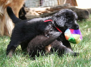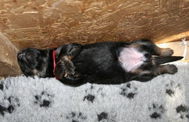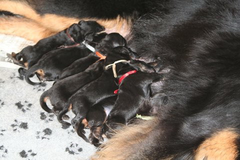 med psoma se je zgodilo vse v 24 urah; res bi lahko rekla, da je bilo nekaj posebnega. Tekla je bila v optimalnem terminu (krvni test hormona Progesteron) in Erika je imela točno omejen čas, ki sta ga z Beo lahko preživeli v Sloveniji. Bell ves evforičen, je med 15.30 in 19.00 v enem dnevu kar dvakrat uspešno paril in naslednji dan še enkrat; ob 16.00 na Veliki petek, smo se že poslovili. Pri zadnjem parjenju sem prvič pomislila in hkrati kar rekla Bei (ki je prevajala iz Angleščine), da bi morda namesto denarja za skok eventuelno vzela psičko; ampak le v primeru da imam pri 6. tednih starosti možnost prva izbrati… Ko je Erika slišala prevod, se je le nasmehnila in pokimala. Doma o tem sploh nismo ne govorili in ne razmišljali. Takrat bi bili vsi proti…po tehtnem razmisleku najbrž tudi jaz sama!