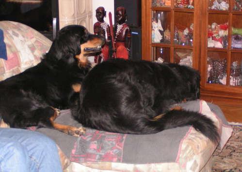 Velikonočni četrtek zvečer, 2007: Tekla in Bell pri nas na sedežni v dnevni sobi... Da bi si jaz kdaj želela psico…se ne spomnim. Vedno le samca – torej psa in nikoli psico. In še danes, če bi me kdo vprašal zakaj, pravega odgovora niti sama ne poznam. Verjamem le v spontana naključja: zadnji dve leti (gotovo se je pričelo že prej, le jaz sem bila nekoliko »slepa« in nisem opazila) so se mi res dogajala. Pravzaprav sem se jim nevede celo pustila voditi…no in imam tretjega hovija (ups, pa saj je hovika) starega že eno leto !!!